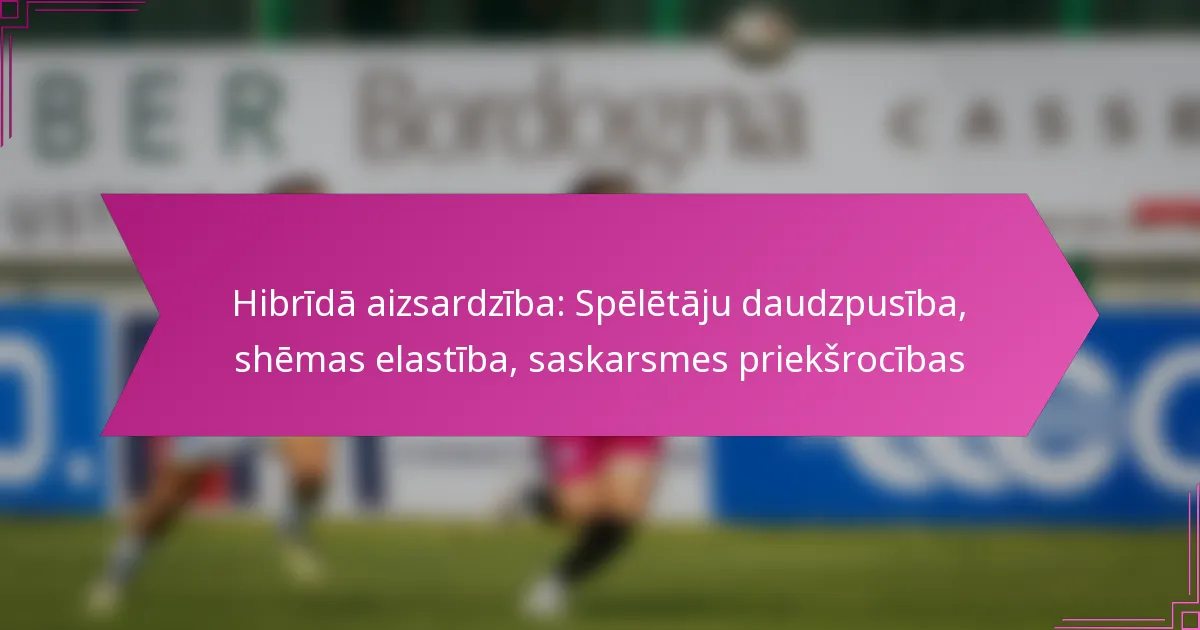 Hibrīdā aizsardzība ir stratēģisks pieejas veids, kas apvieno dažādas aizsardzības shēmas, lai palielinātu komandas daudzpusību un pielāgojamību laukumā. Izmantojot spēlētāju daudzpusību un shēmu elastību, komandas var efektīvi pielāgoties dažādiem uzbrukuma stiliem, radot priekšrocības, kas traucē pretiniekiem un uzlabo kopējo sniegumu.