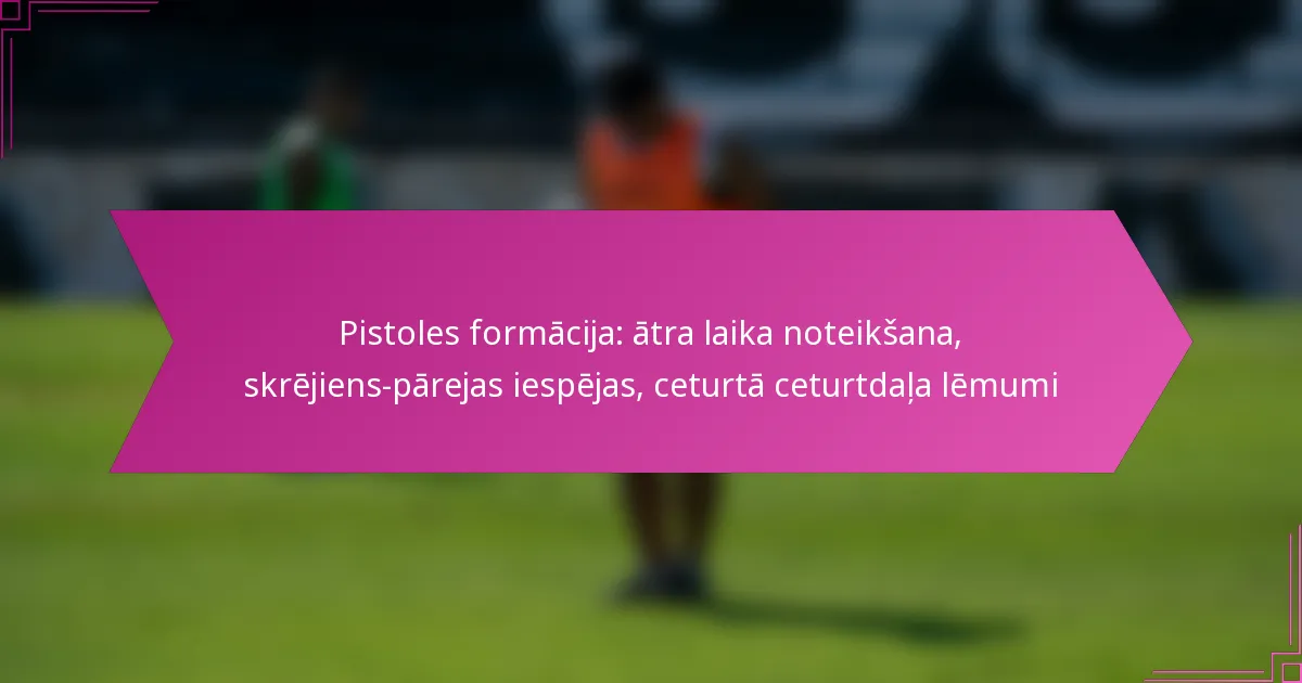 Pistol formācija ir inovatīva uzbrukuma izkārtojuma forma futbolā, kas novieto aizsargu tieši aiz centra, ļaujot elastīgi pieiet gan skrējiena, gan piespēles spēlēm. Snapu laiks spēlē būtisku lomu šajā formācijā, ļaujot aizsargiem lasīt aizsardzību un pieņemt ātrus lēmumus, kas uzlabo uzbrukuma efektivitāti. Turklāt skrējiena-piespēles iespēju (RPO) iekļaušana sniedz aizsargiem iespēju pielāgot savu stratēģiju, izmantojot aizsardzības izkārtojumu, lai maksimāli palielinātu uzbrukuma potenciālu.